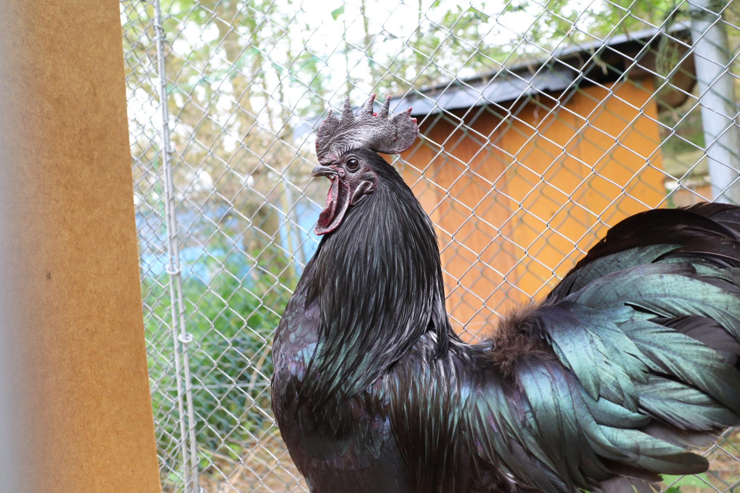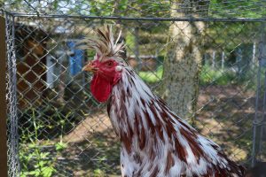 Im Gepäck unseren eigenen Nachzuchthahn PINSEL. Einen blauen Sandschak Kräher aus unser ersten Naturbrut. Von dem wir anfänglich dachten er sei ein Mix mit Cou Nu, welcher sich aber mittlerweile als waschechter Sandschak Langkräher erwiesen hat.