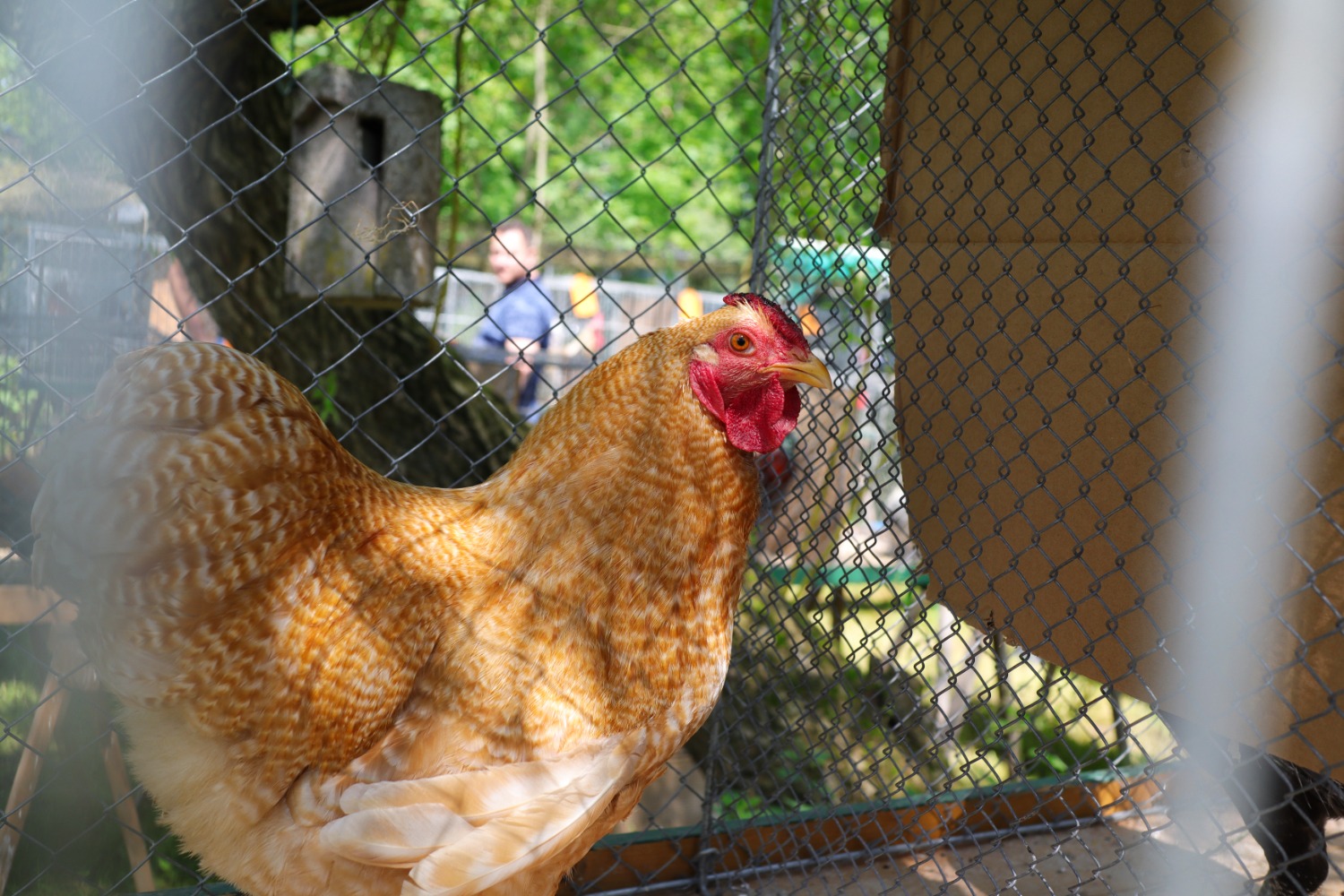 Rainer unser Züchterfreund, von dem wir damals PINSELs Vater LEMMY bekommen hatten war auch mit seinem aktuellen rotbunten Sandschak Zuchthahn mit dabei.